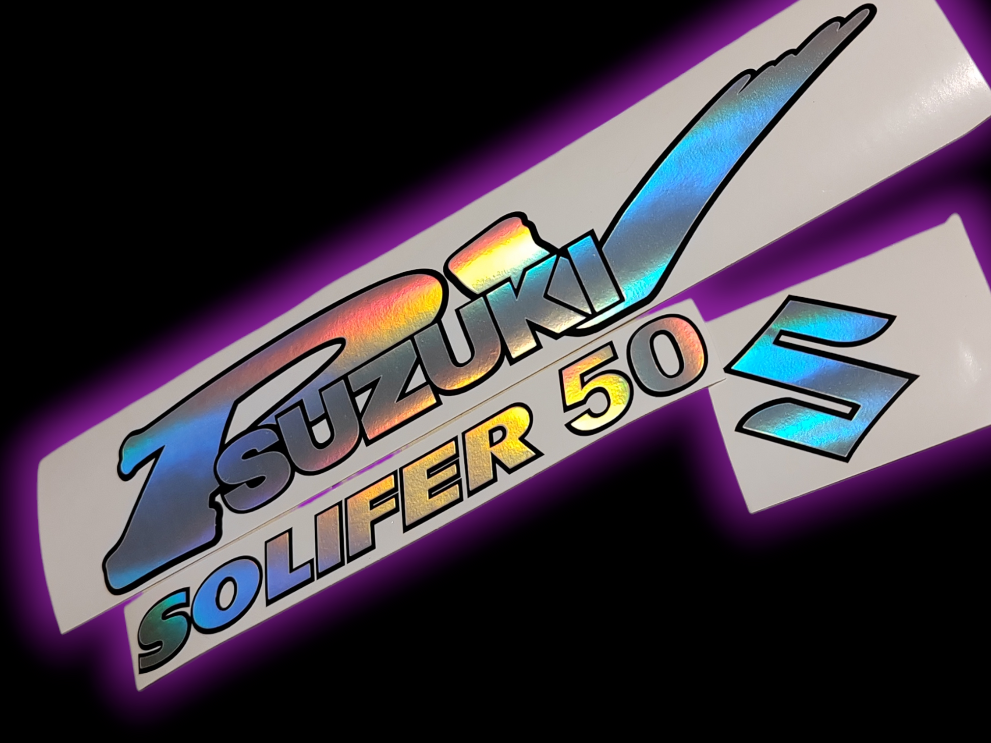 Sis. 2kpl tankin tarra, 1kpl s logo ja 1kpl Solifer 50 sivuposken tarra